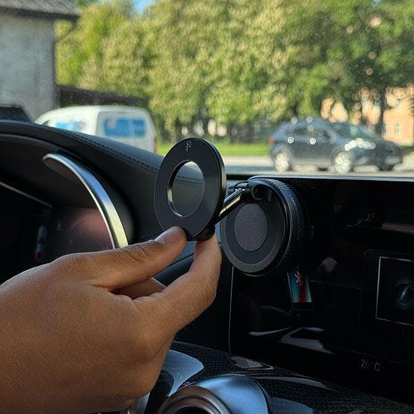 Snap your iPhone directly onto the MagSafe head. Don’t have MagSafe? Use the included metal ring for secure attachment.